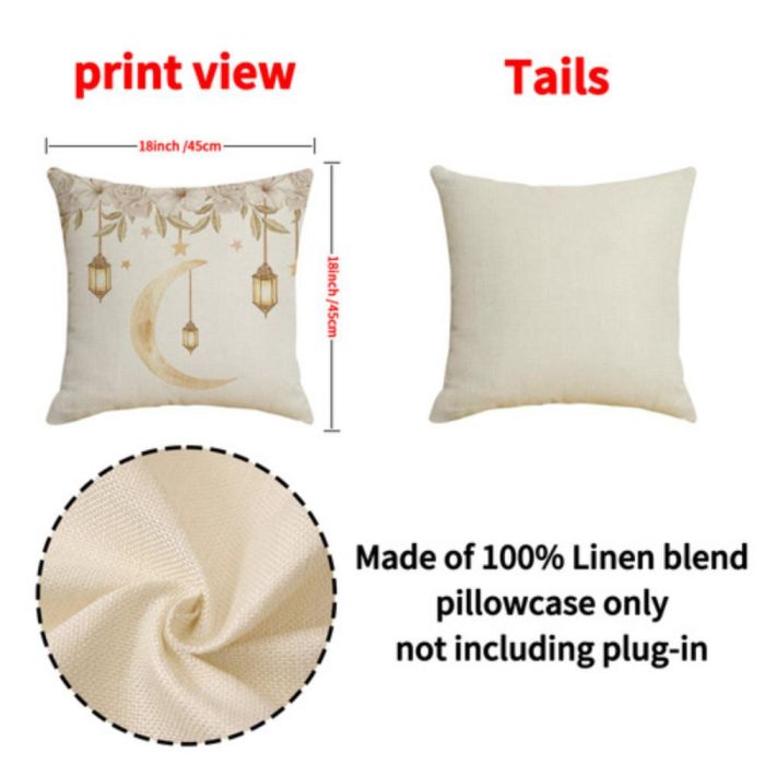 طقم غطاء وسادة رمضاني أنيق مصنوع من خامة مريحة بملمس ناعم، يتميز بتصميم هادئ مستوحى من أجواء رمضان، يضفي لمسة دافئة ومتناسقة على الديكور ويمنح إحساسًا بالراحة والرقي