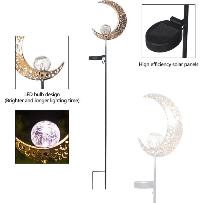 - مصباح كريستالي أنيق يعمل بالطاقة الشمسية على شكل هلال 75 × 18 × 6 سم