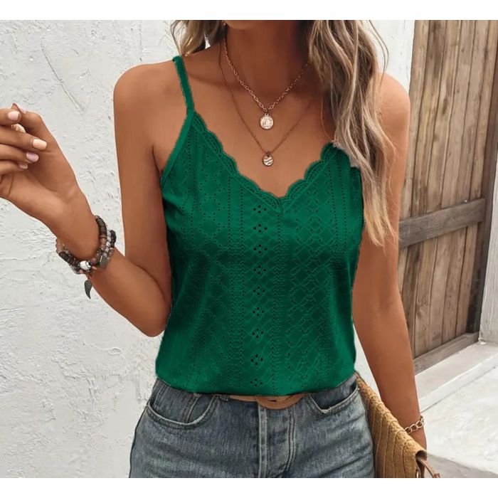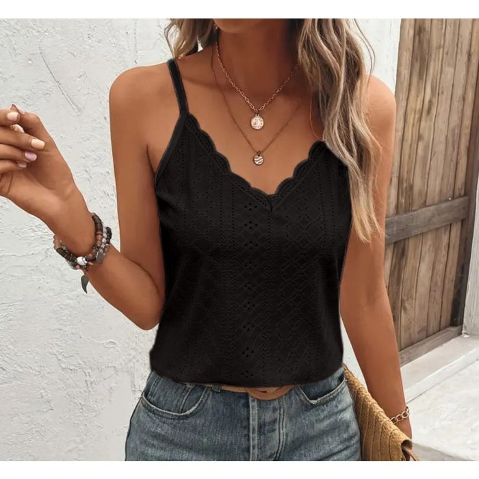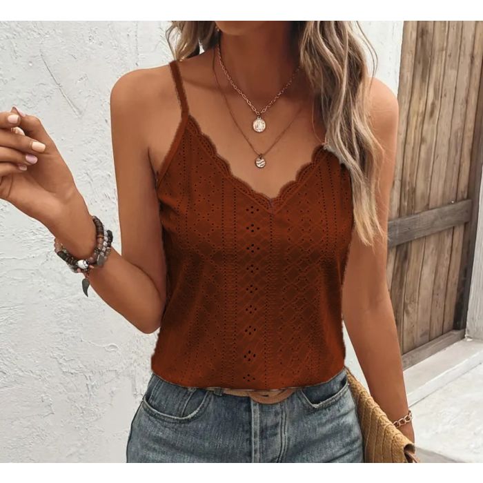 تميّزي بإطلالة ناعمة وعصرية مع هذه البلوزة المصنوع من الدانتيل السادة، والمصممه بدون أكمام لتمنحك إحساساً بالراحة والانتعاش. تتميز بقصة أنيقة وخامة شفافة تضيف لمسة من الجاذبية دون مبالغة. مثالية للتنسيق مع تنورة أو بنطال عالي الخصر، سواء للإطلالات اليومية أو المناسبات الخاصة. تصميمها السادة يتيح لك حرية اختيار الإكسسوارات التي تناسب ذوقك.صفقة اليوم هي بلوزة دانتيل سادة أنيق بدون أكمام للسيدات