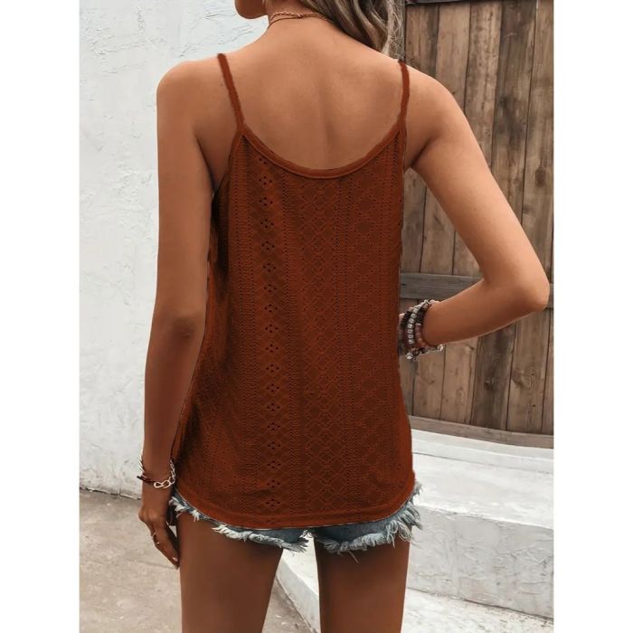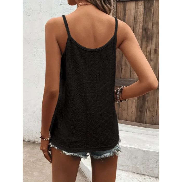 بلوزة دانتيل سادة أنيق بدون أكمام للسيدات
