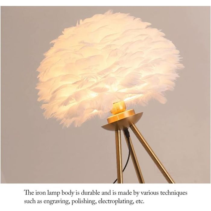 أضف لمسة من الرقي والنعومة إلى ديكور منزلك مع هذا المصباح الأرضي المصمم بريش أبيض أنيق وقاعدة معدنية قوية. يناسب غرف النوم والمعيشة والمكاتب، ويمنح إضاءة دافئة ومريحة. تصميمه العصري يجمع بين الجمال والوظيفة، مما يجعله قطعة ديكور مثالية لعشاق التفاصيل الفاخرة.