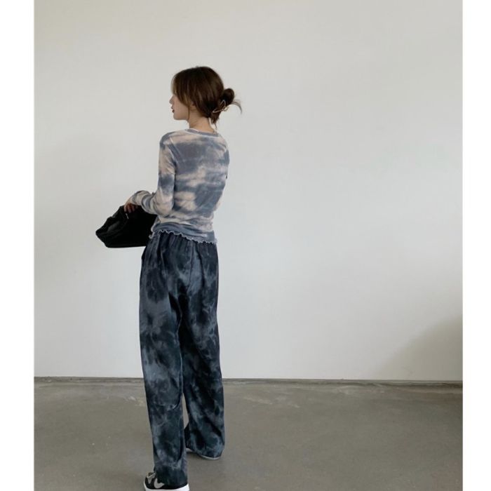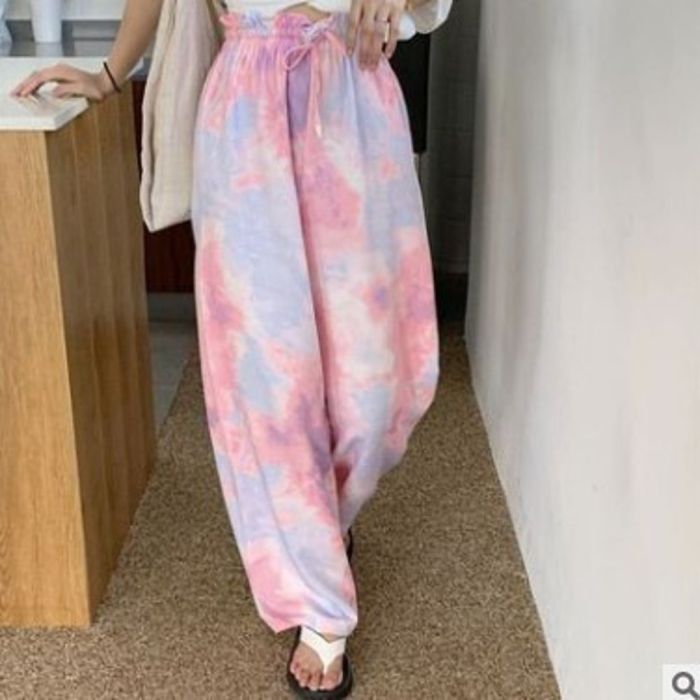 بنطلون بأرجل واسعة للسيدات مصنوع من خامة صيفية نحيفة ومريحة، مصمم ليمنح مظهراً رشيقاً مع خصر مرتفع لنحت الخصر، يتميز بتصميم جذاب الذي يضيف لمسة من البهجة والأناقة الكاجوال، مثالي للاسترخاء والتسوق في الأجواء الدافئة.