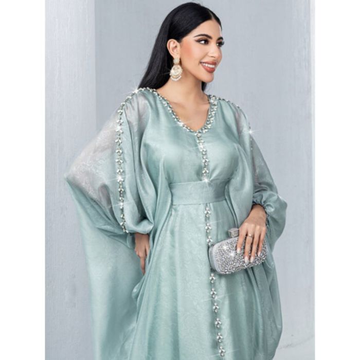 - يتميز بتصميم مرصع أنيق مع تحديد واضح للخصر يمنح إطلالة راقية