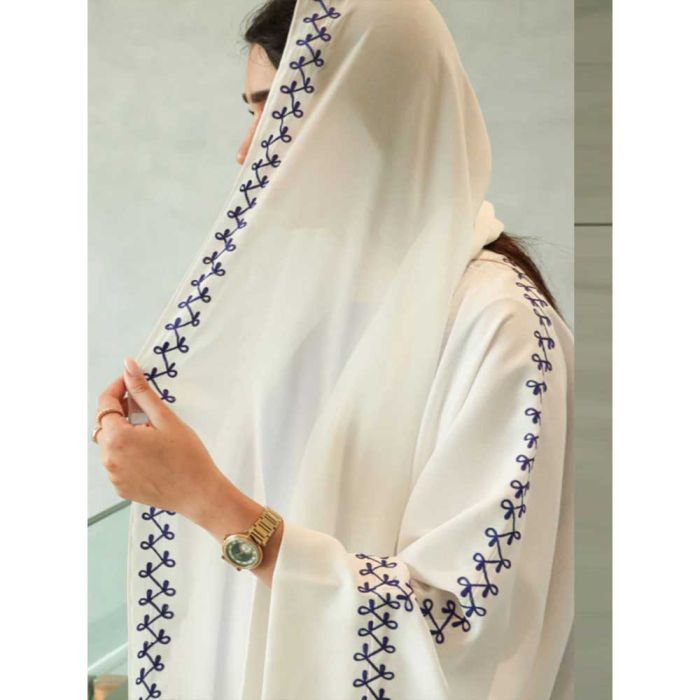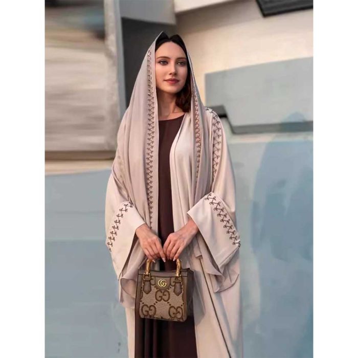 - عباية ذات أكمام خفاش واسعة وتطريز راقٍ