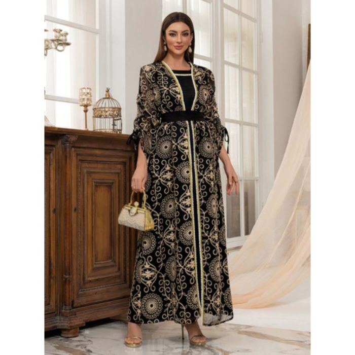 طقم فستان وعباية مطرزة أنيق للسيدات