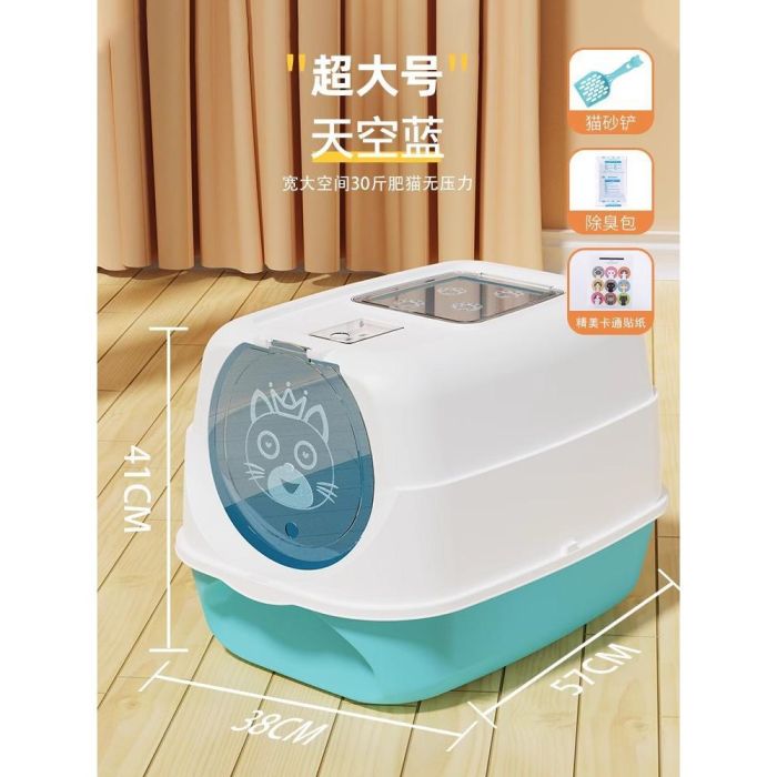 - صندوق فضلات مغلق للقطط مع كيس مزيل للروائح
