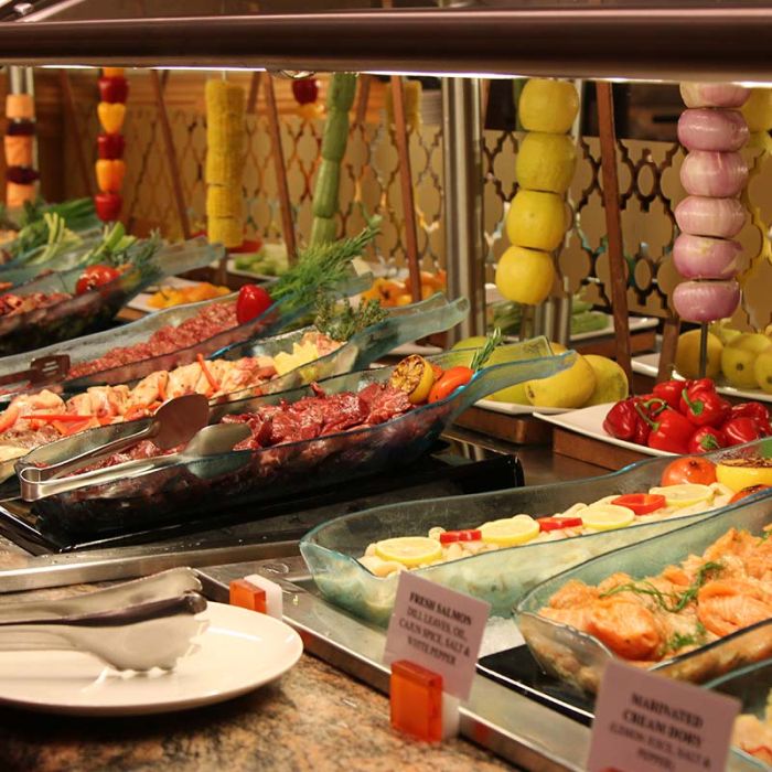 - يقدم مطعم الأحمدي الشهير في فندق كراون بلازا هوليداي ان أطيب وأشهى بوفيه عشاء عالمي متنوع تم تحضريه بأيدي أمهر الطهاة