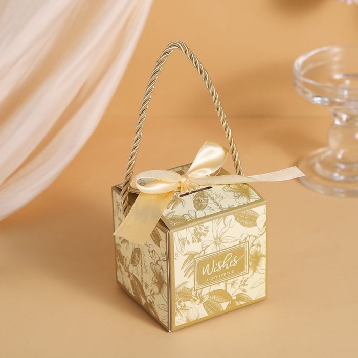 علبة حلوى زفاف أوروبية محمولة مصنوعة من خامات متينة بتصميم أنيق يسهل حمله ويمنحك حلاً راقيًا لتقديم الحلوى في حفلات الزفاف والخطوبة مع مظهر جذاب يعكس فخامة المناسبة واهتمامك بالتفاصيل