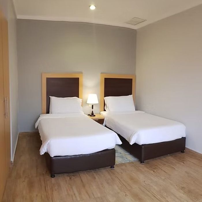 - شاليه بثلاث غرف نوم في الطابق الأول والطابق الأرضي بدون غرفة خادمة، عدد الأشخاص 6 بالغين + طفلين دون سن 6 سنوات، على الضيف دفع 10 دينار كويتي إضافية للخادمة في الليلة الواحدة دون توفير سرير إضافي.