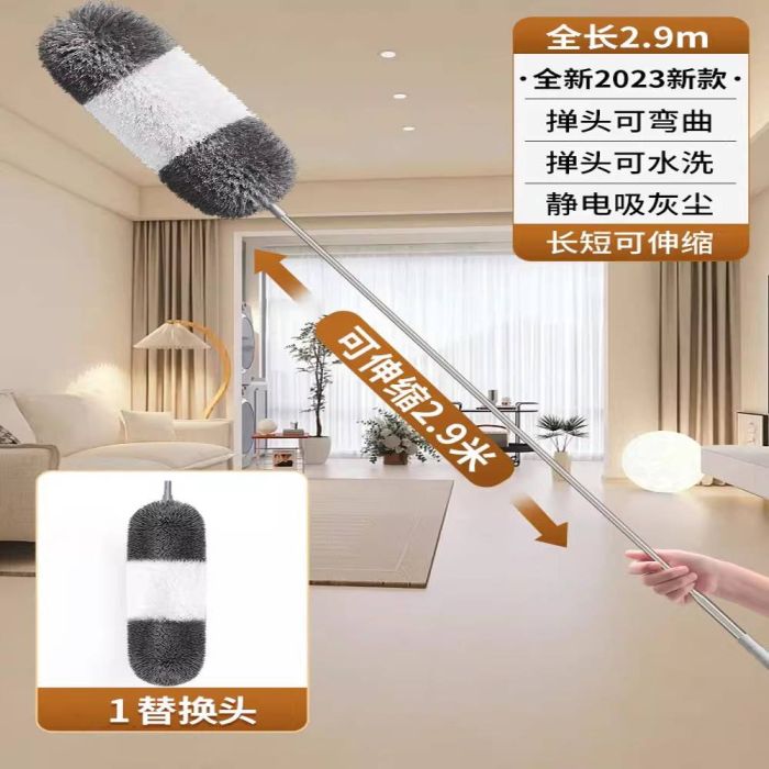 منفضة غبار قابلة للتمديد مصنوعة من ألياف ناعمة، تلتقط الغبار بالكهرباء الساكنة، تتيح لك تنظيف الأسقف والزوايا العالية بسهولة دون الحاجة لسلم