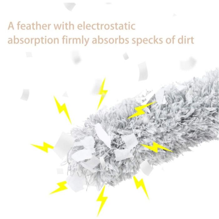 قم بتنظيف منزلك بكفاءة باستخدام منفضة الغبار المصنوعة من الريش. قم بمدها للوصول إلى مستويات عالية من السقف