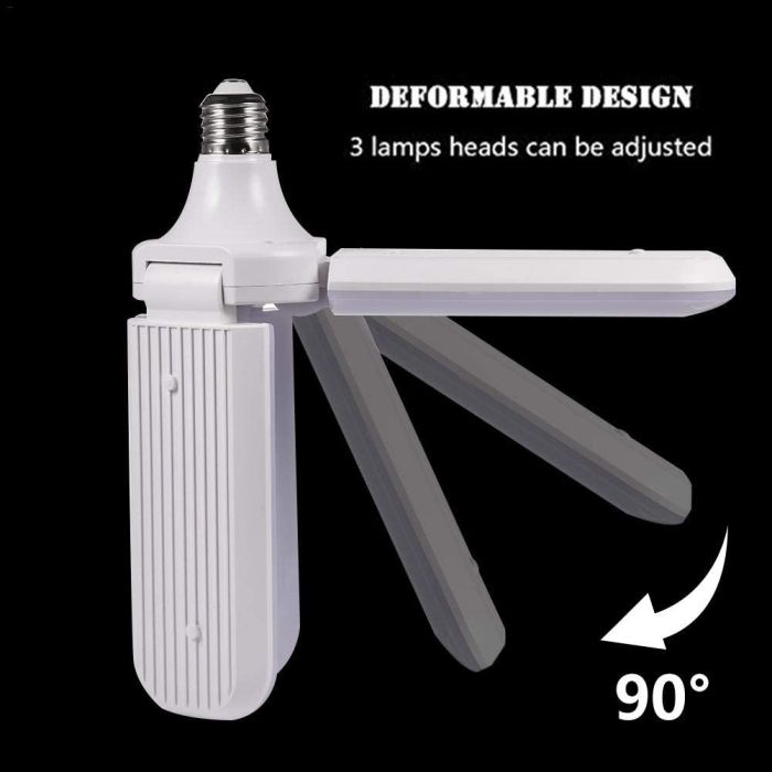 احصل على مستويات إضاءة مختلفة مع مصباح LED على شكل مروحة. يمنحك المصباح بيئة مريحة لعينيك. يحتوي مصباح LED على شكل مروحة على شفرات قابلة للطي للحصول على درجة الإضاءة التي ترغب بها. يعمل المصباح على توفير 80% من الطاقة مقارنة بالإضاءة التقليدية. يمتاز المصباح بأنه سهل التركيب ولا يحتاج لتأسيسات خاصة.