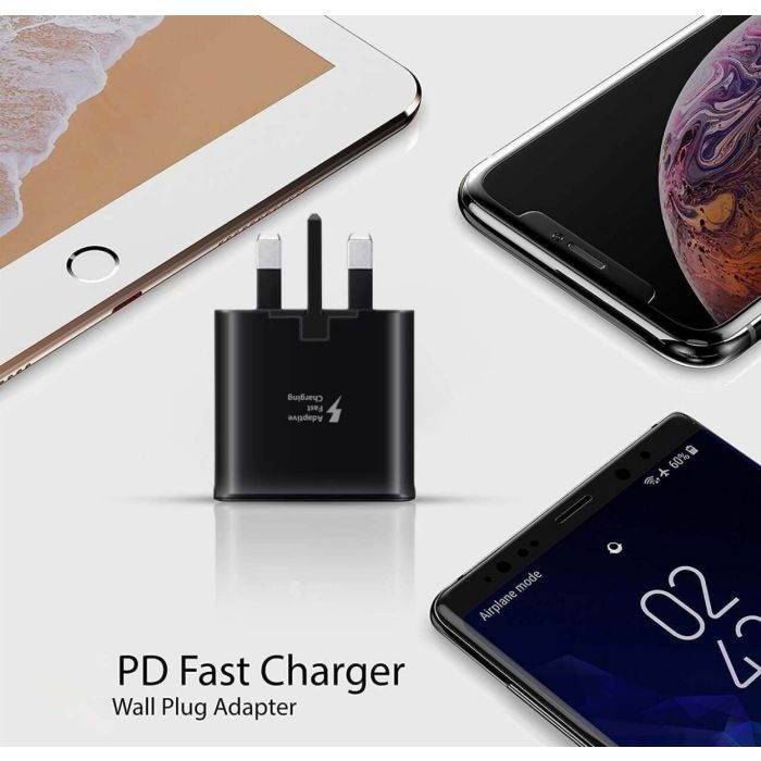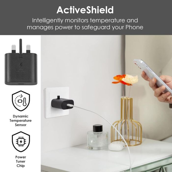 هذا الشاحن USB‑C بسرعة 50 واط يتميز بمقبس قابلة للطي من نوع UK بثلاث دبابيس وشريحة ذكية للشحن الآمن والذكي. مثالي لشحن الهواتف الذكية والأجهزة اللوحية وغيرها بتصميم أسود أنيق ومناسب للسفر.