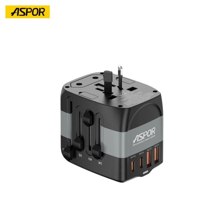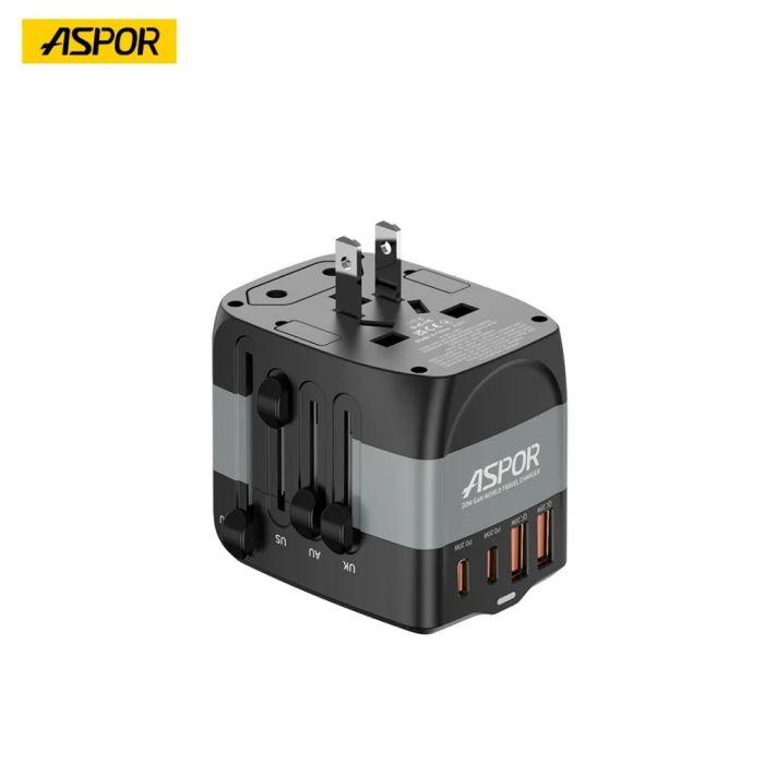 محول سفر عالمي سريع بتقنية GaN قوة 20 واط و 4 مخارج من Aspor