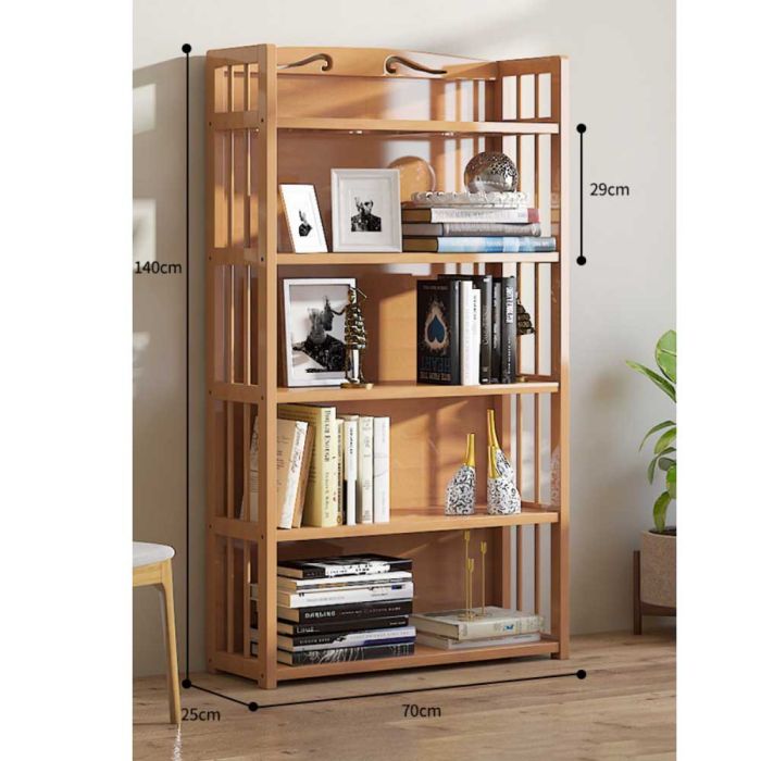 مكتبة كتب خشبية 5 طبقات مصنوعة من خشب متين بتصميم بسيط وأنيق، توفر ترتيبًا منظمًا للكتب والإكسسوارات، وتضفي لمسة دافئة على المساحات، مناسبة لغرف المعيشة والدراسة