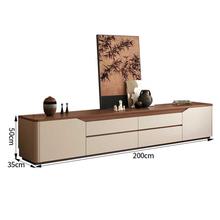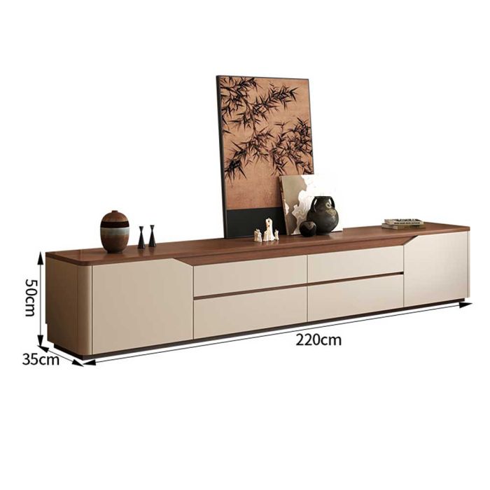 طاولة تليفزيون خشبية أرضية مع 2 باب و 4 أدراج