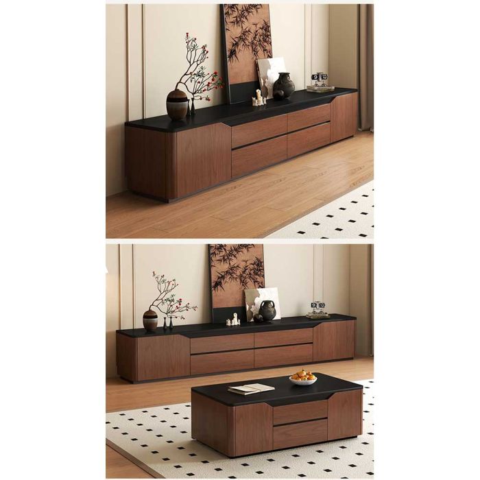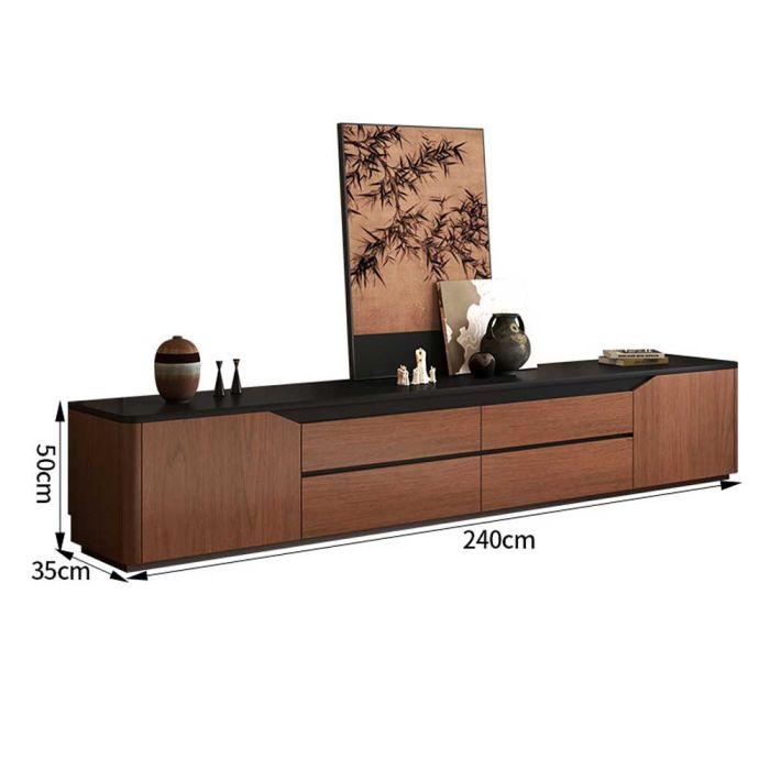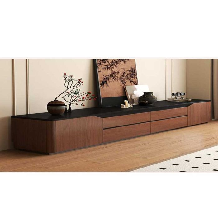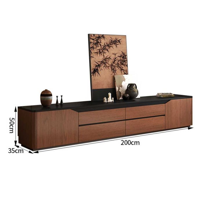 طاولة تليفزيون خشبية أرضية مع 4 أدراج و2 باب