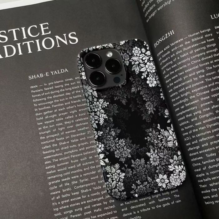 يوفر غطاء الحماية هذا تصميمًا أنيقًا وعصريًا مع حماية متقدمة لجهازك. يتميز بسطح أسود ناعم مع نمط زهور خفيف وفتحة كبيرة وفريدة حول وحدة الكاميرا لتوفير حماية فائقة للعدسات. هذا النمط الجديد هو طريقة بسيطة وأنيقة لحماية هاتفك.صفقة اليوم هي غطاء حماية بتصميم زهور مع فتحة كاميرا كبيرة وسطح أملس لهاتف iPhone