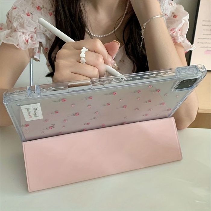 - غطاء حماية شفاف بتصميم زهور للآيباد