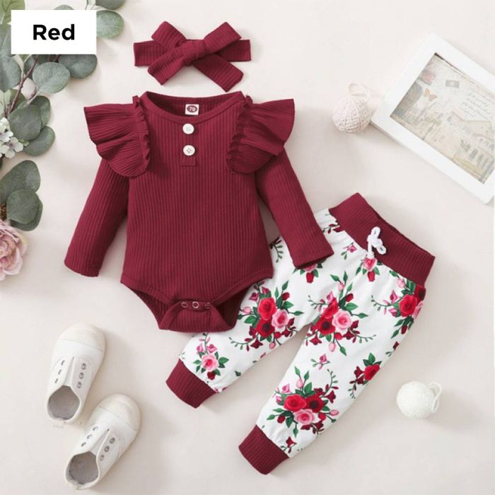 - طقم Flower من ثلاث قطع للبنات حديثي الولادة