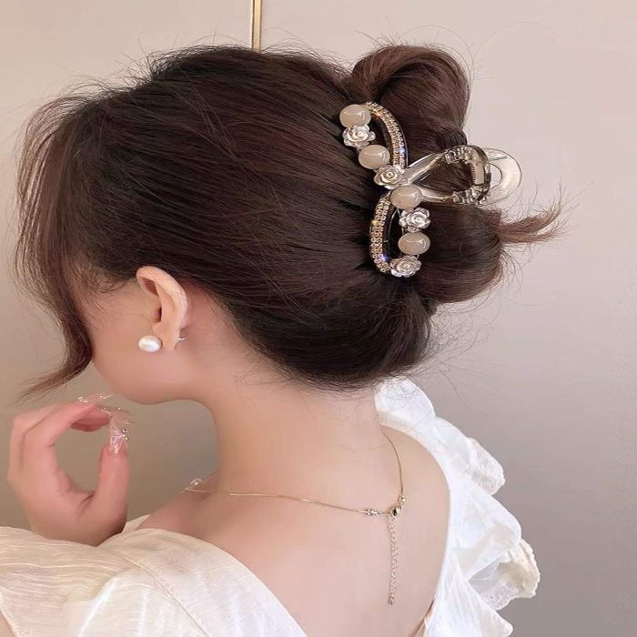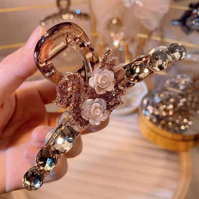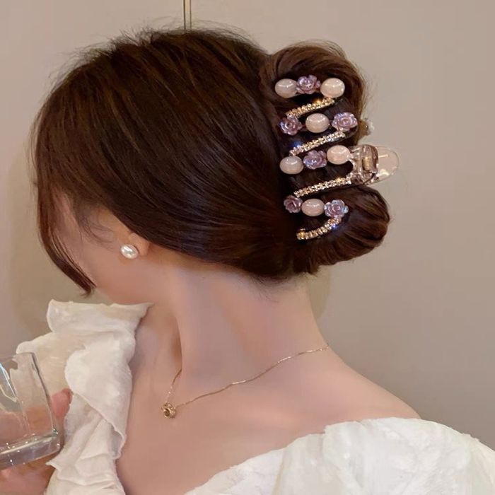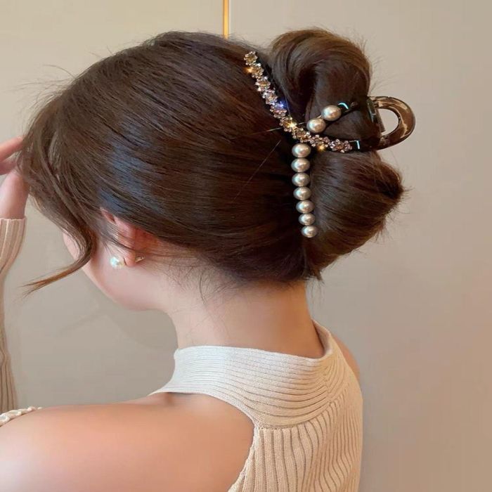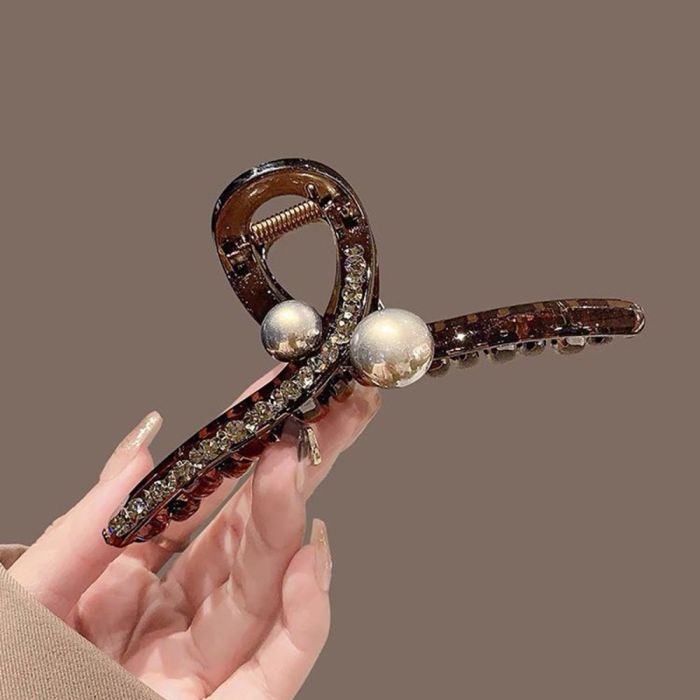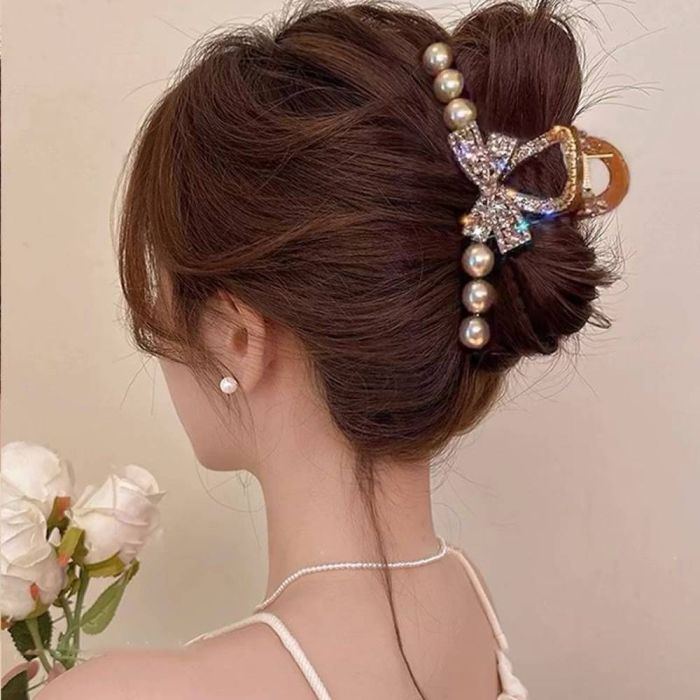 مشبك شعر مزخرف باللؤلؤ والأحجار اللامعة للسيدات مصنوع من أحجار الراين اللامعة التي تضيف لمسة من الفخامة والرقي إلى إطلالتك اليومية، تصميمه الأنيق والمتين يضمن ثبات الشعر بشكل مثالي طوال اليوم دون التسبب في أي إزعاج، مثالي للمناسبات الخاصة أو الاستخدام اليومي حيث يجمع بين الجمال والعملية ليمنحك مظهرًا أنيقًا وجذابًا في كل الأوقات.