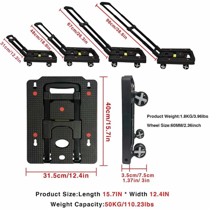 - عربة يدوية قابلة للطي بـ 4 عجلات