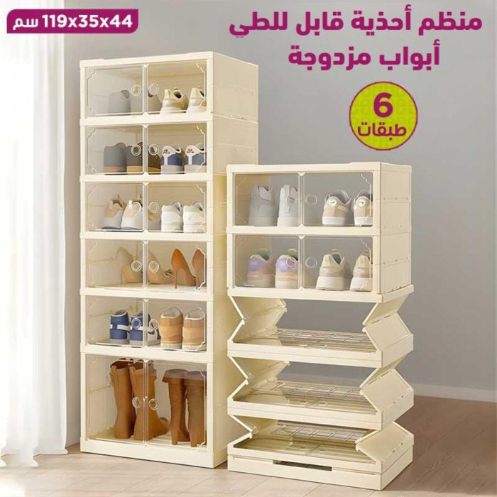 - منظم أحذية قابل للطي أبواب مزدوجة 6 طبقات