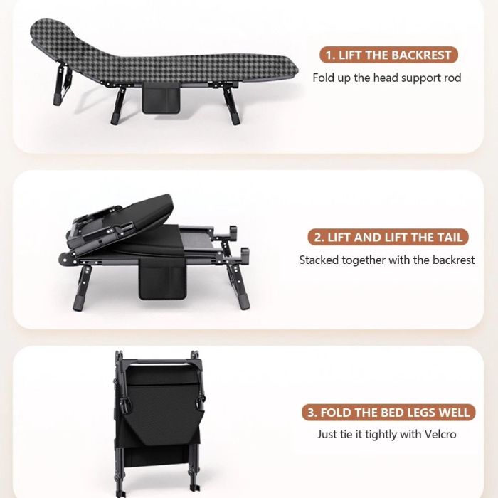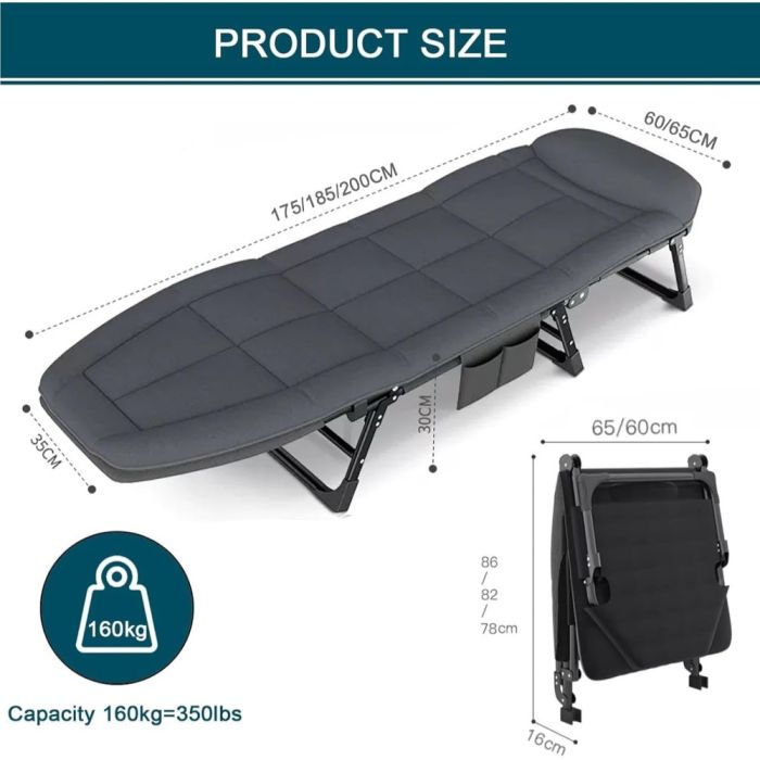 - كرسي استرخاء قابل للطي والتعديل بإطار معدني 200 × 65 سم