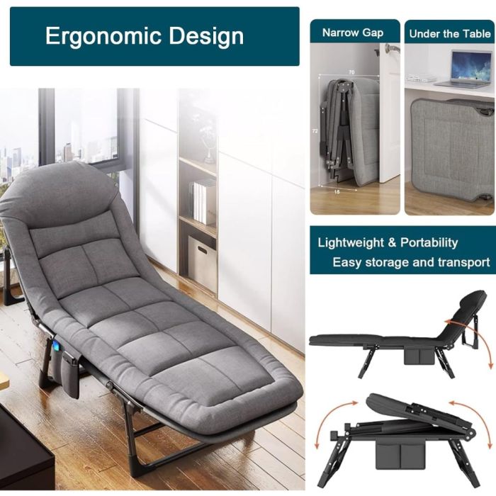 كرسي استرخاء قابل للطي والتعديل بإطار معدني 200 × 65 سم