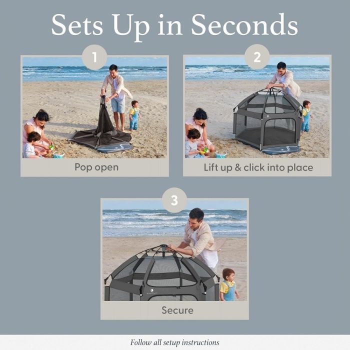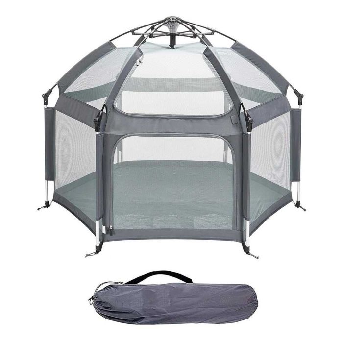 خيمة أطفال قابلة للطي تم تصميمها لتوفر مساحة آمنة ومريحة لطفلك أثناء الاستمتاع بيوم في الهواء الطلق. مصنوعة من قضبان متينة تُثبت بقفل أمان وقماش شبكي مسامي لتوفر رؤية واضحة، كما تضمن هذه الخيمة حماية طفلك من الشمس والحشرات. كما أنها خفيفة الوزن وسهلة الحمل، وتأتي مع حقيبة مريحة، مما يجعلها مثالية للرحلات العائلية