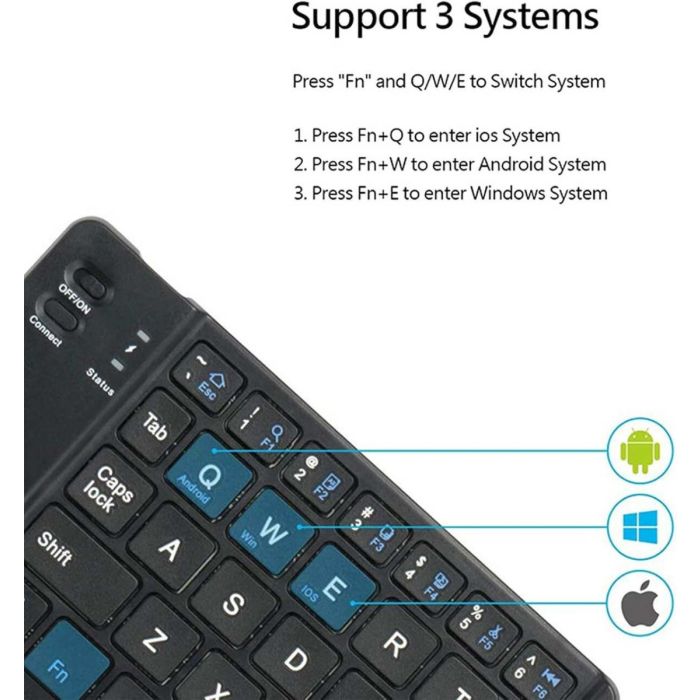 لوحة مفاتيح لاسلكية ذات أداء تشغيل سلس للكتابة السريعة. مجهزة بمفاتيح متعددة الوظائف وتصميم مفاتيح مثالي، خفيفة الوزن ونحيفة، مدعومة ببطارية ليثيوم قابلة لإعادة الشحن. متوافق مع نظام Android/ iOS / Windows، ومناسبة للهواتف والتابلت واللابتوب عن طريق البلوتوث.