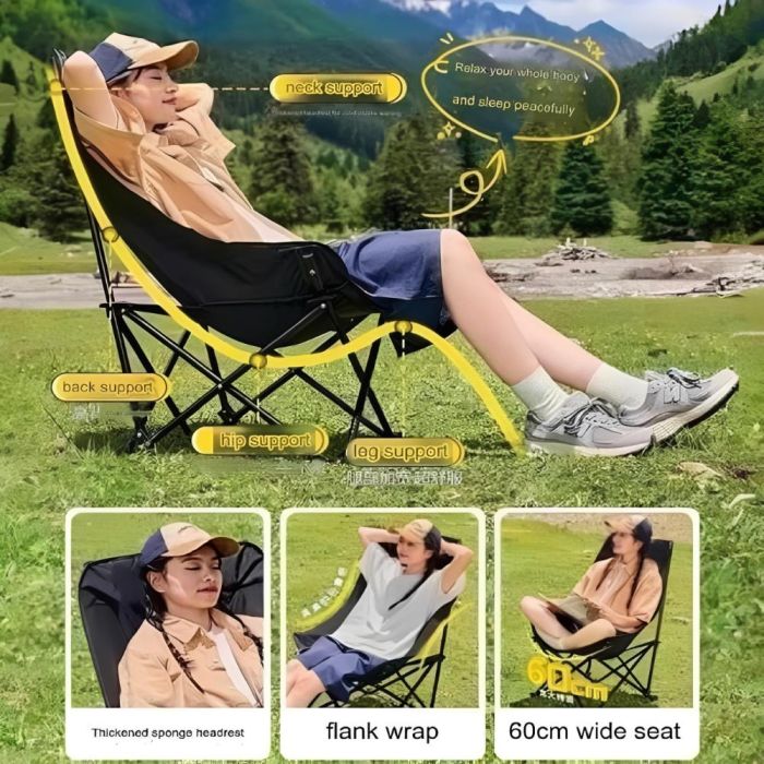 استمتع بأقصى درجات الراحة في المخيم مع هذا الكرسي الأنيق، يتحمل وزن حتى 90 كجم، كما يأتي مع حقيبة مدمجة لسهولة الحمل والتنقل