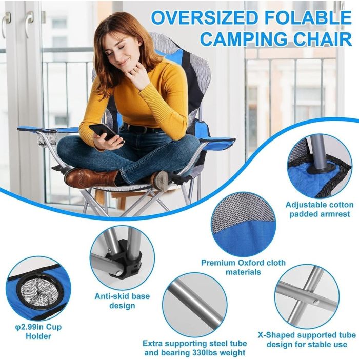 يمنحك كرسي المخيم القابل للطي راحة مثالية أثناء الجلوس في الهواء الطلق، سواء في المخيم أو الرحلات البرية. تصميمه العملي مع قاعدة الأكواب وحقيبة تجعله سهل الاستخدام والنقل، لتستمتع بجلسة مريحة في أي مكان.
