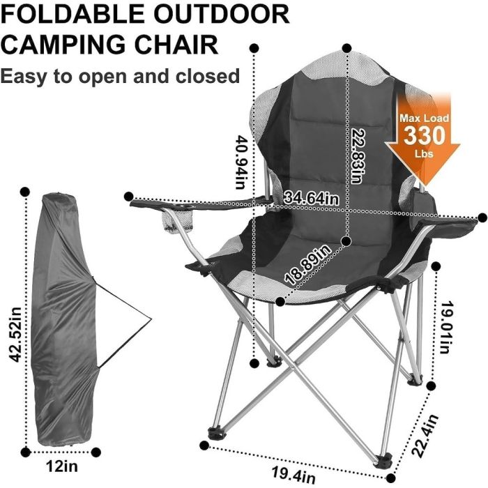 كرسي مخيم قابل للطي مع قاعدة اكواب وحقيبة 59×59×105 سم