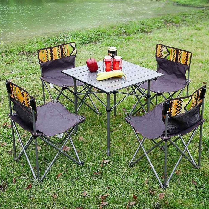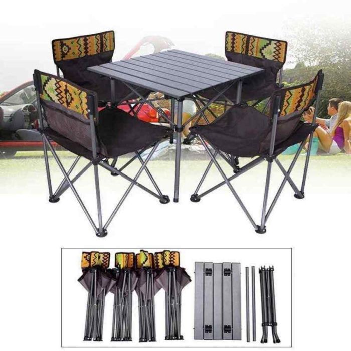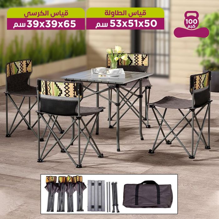 طاولة مخيم قابلة للطي مع 4 كراسي