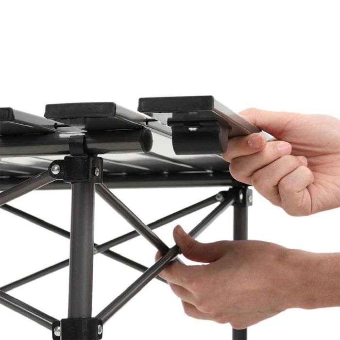 طقم طاولة و4 كراسي مصنوعة من الألومنيوم عالي الجودة مع كراسي مصنوعة من قماش أكسفورد، كما يمكن طي الطاولة بأكملها مع الكراسي وفتحها في 3 دقائق فقط مع تصميم سهل التنظيف يجعلها مناسبة لتناول الطعام