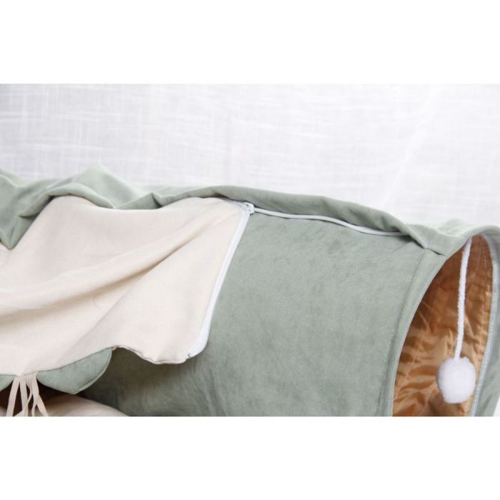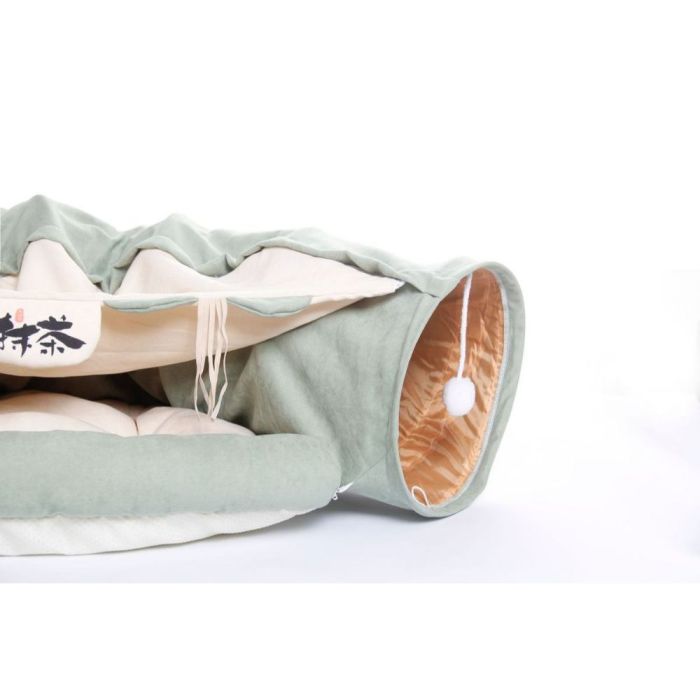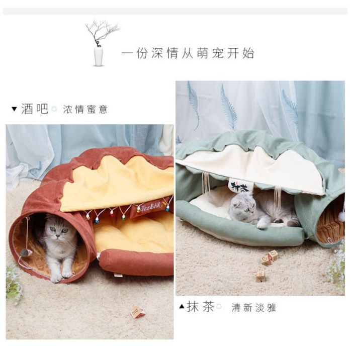 سرير ونفق لعب قابل للطي للقطط مصنوع من خامة ناعمة مريحة، يجمع بين مساحة نوم مريحة ونفق تفاعلي للعب، تصميم قابل للطي يسهل التخزين، يمنح قطتك متعة وراحة طوال العام داخل المنزل