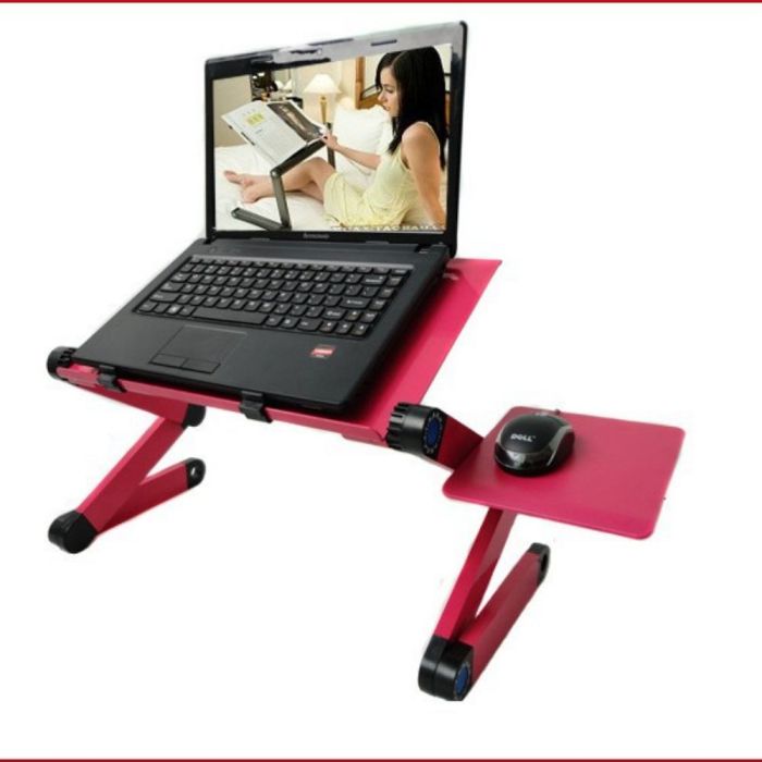 ستاند لابتوب تبريد قابل للطي مصنوع من معدن متين، يمنحك استخدامًا مريحًا مع فتحات تهوية تساعد على تبديد الحرارة، تصميم قابل للطي مع سطح جانبي للماوس، مناسب للاستخدام على المكتب أو السرير بثبات وأناقة