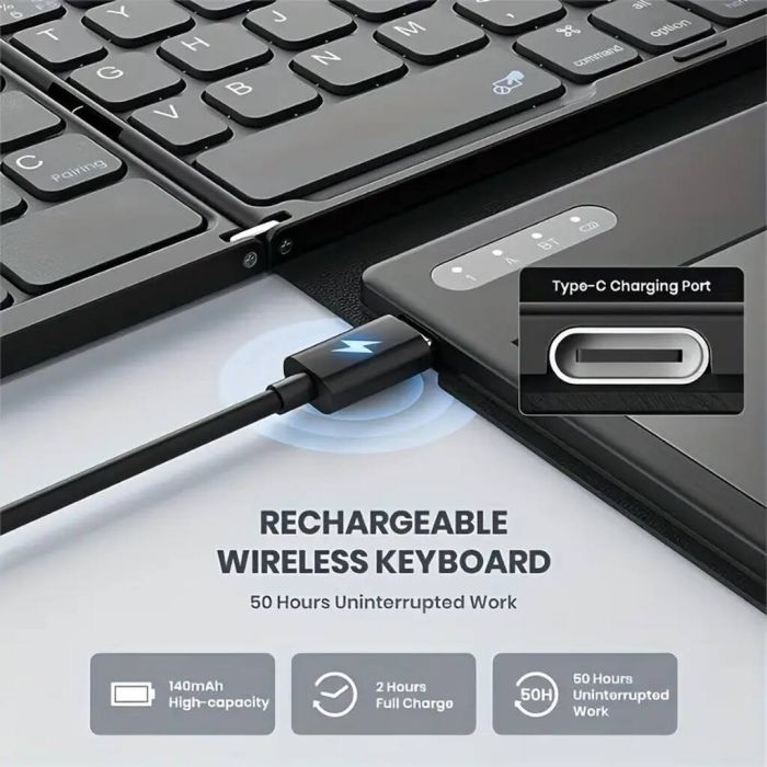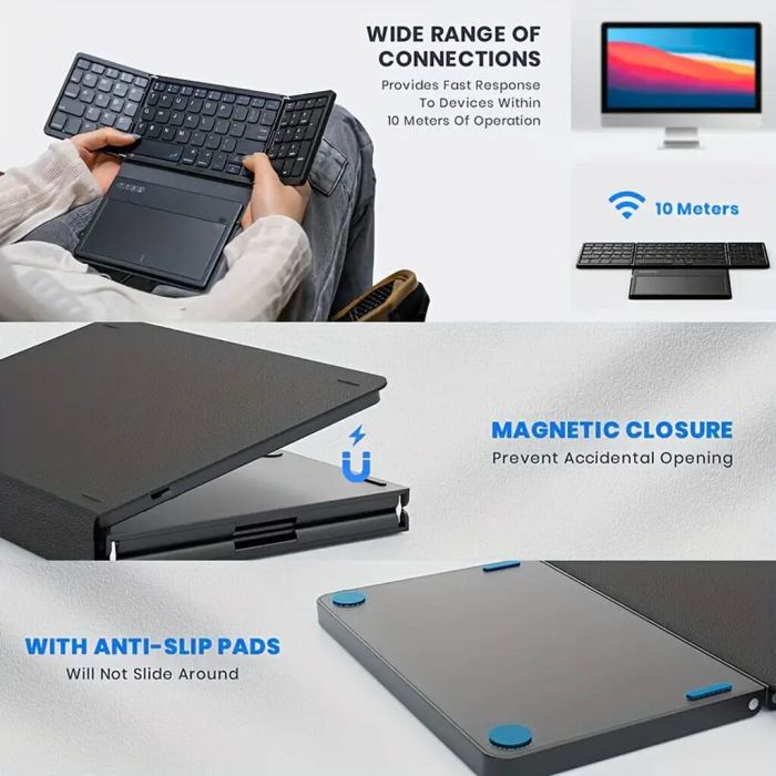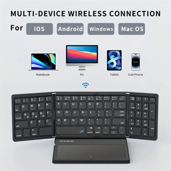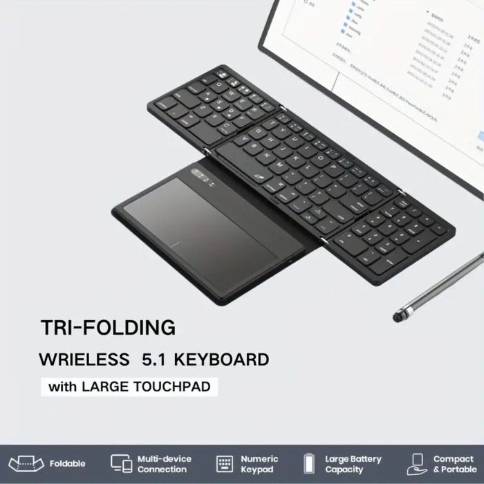 - لوحة مفاتيح لاسلكية قابلة للطي بالحجم الكامل مع لوحة لمس كبيرة