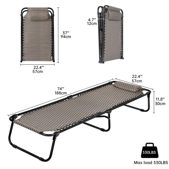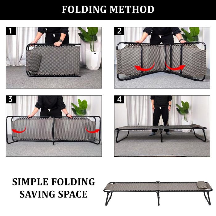سرير عملي قابل للطي لا يحتاج إلى تركيب، مناسب للرحلات، التخييم، المكتب أو كسرير إضافي في المنزل مع إمكانية تحمل وزن حتى 150 كجم