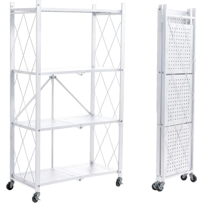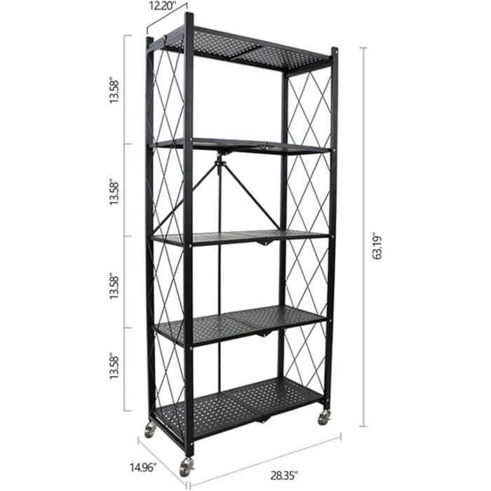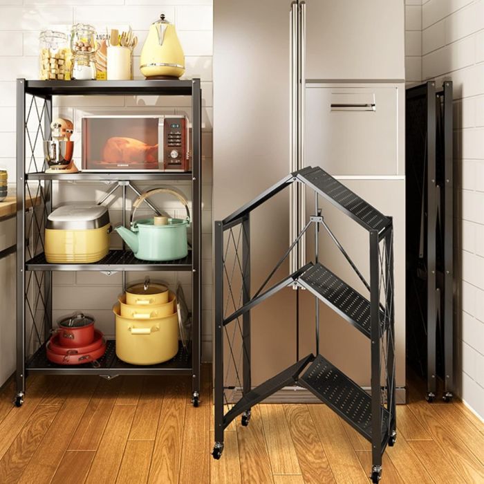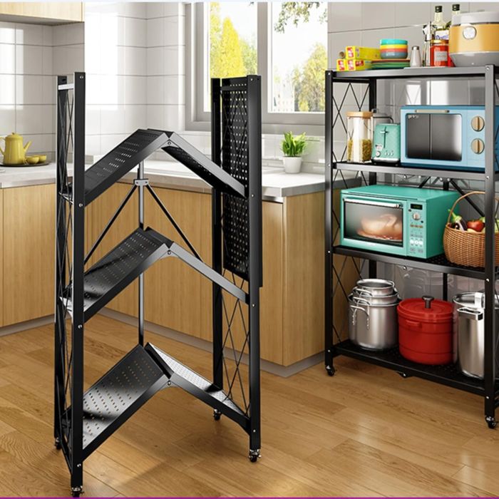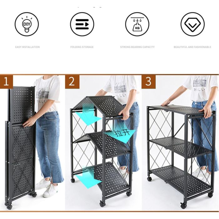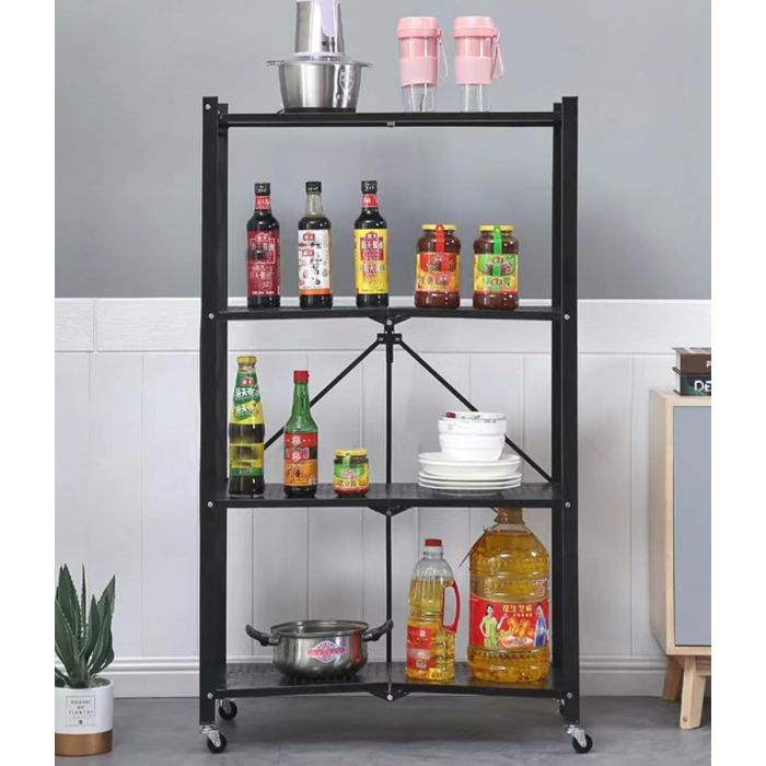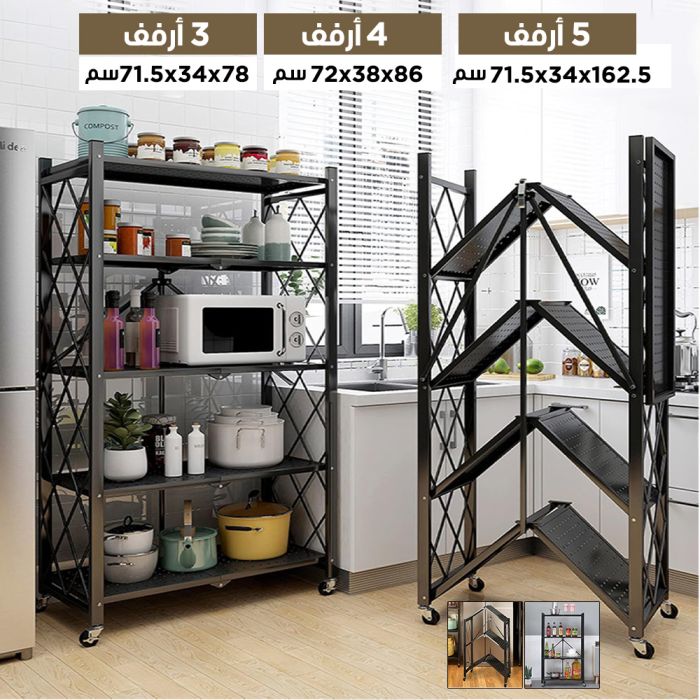 منظم معدني أنيق بأرفف تخزين متعددة وتصميم قابل للطي ومزود بعجلات لسهولة الحركة ( متوفر ب 3 أو 4 او 5 أرفف حسب اختياركم)
