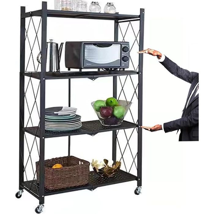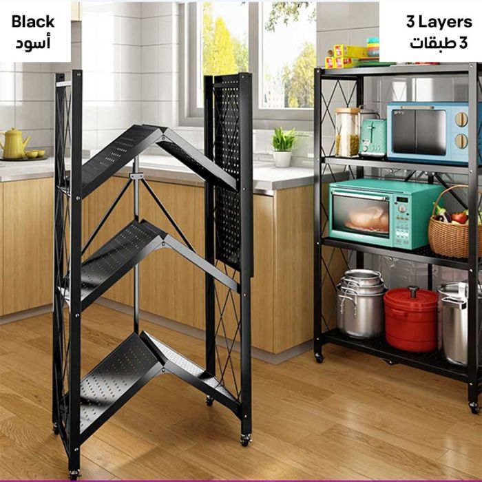 صفقة اليوم هي منظم معدني أنيق بأرفف تخزين متعددة وتصميم قابل للطي ومزود بعجلات لسهولة الحركة ( متوفر ب 3 أو 4 او 5 أرفف حسب اختياركم)