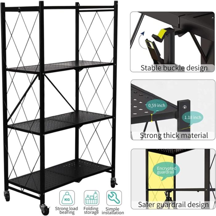 - منظم معدني أنيق بأرفف تخزين متعددة وتصميم قابل للطي ومزود بعجلات لسهولة الحركة ( متوفر ب 3 أو 4 او 5 أرفف حسب اختياركم)