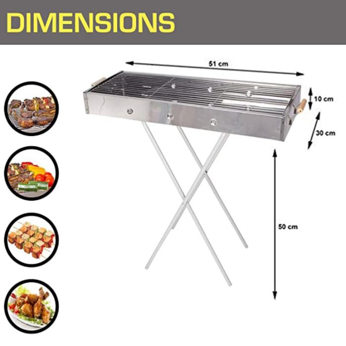 شواية فحم قابلة للطي ومحمولة من الستانلس ستيل 60 × 51 × 30 سم
