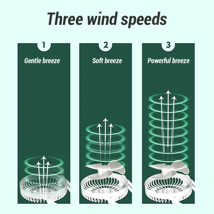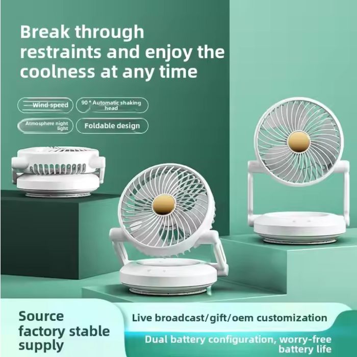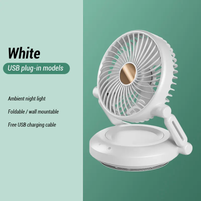 - مروحة مكتب قابلة للطي والشحن 3 سرعات مع إضاءة ليلية