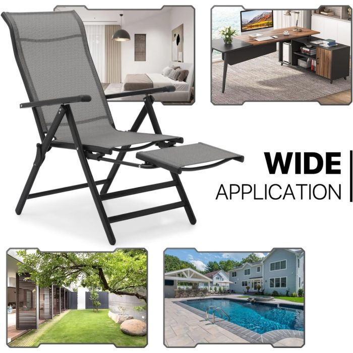 كرسي استلقاء قابل للطي مع مسند قدم قابل للسحب