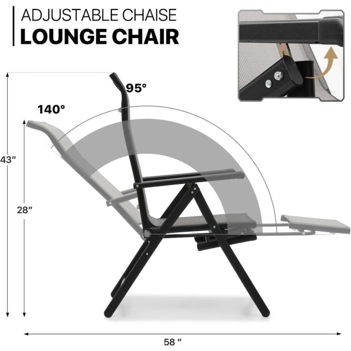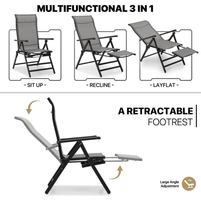 - كرسي استلقاء قابل للطي مع مسند قدم قابل للسحب
