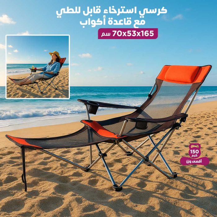 - كرسي استرخاء قابل للطي مع قاعدة أكواب
