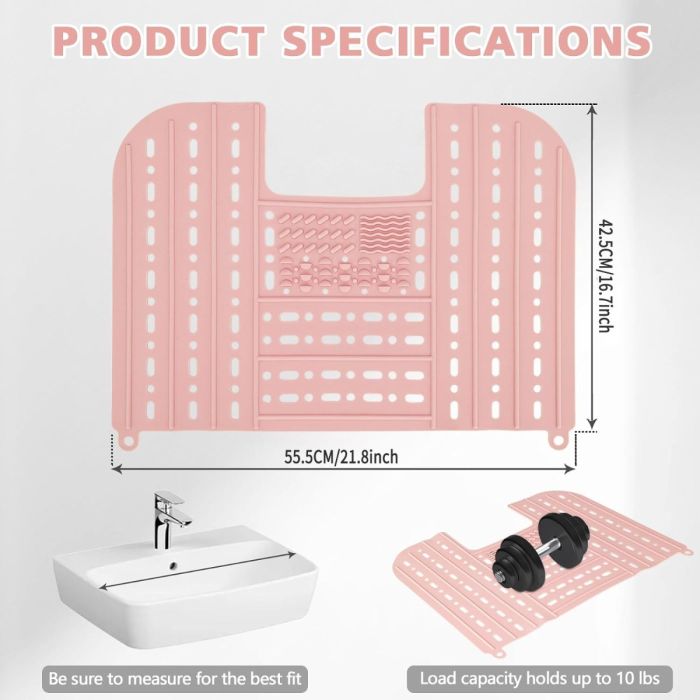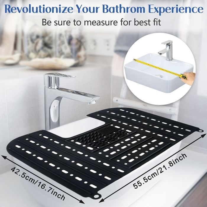 غطاء حوض متعدد الاستخدامات مصمم لزيادة المساحة المُستخدمة فى حمامك. يمكن وضعها فوق الحوض، مما يوفر سطحًا ثابتًا لتنظيم وتخزين مستحضرات التجميل والمكياج. مصمم بفتحات لسهولة التجفيف والتخزين للاستفادة من المساحة الموجودة على الحوض دون التأثير على استخدام الحنفيات وتوسيع استخدام المساحة المتاحة.