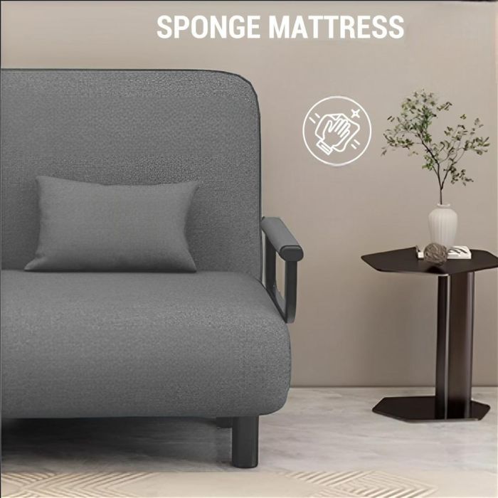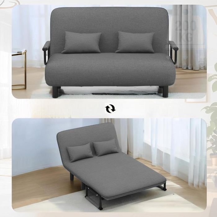 صوفا مريحة تتحول بسهولة إلى سرير مزدوج، تأتي مع مسند رأس قابل للتعديل بزوايا مختلفة ليمنحك وضعية الجلوس أو النوم المثالية وتتحمل وزن حتى 200 كجم